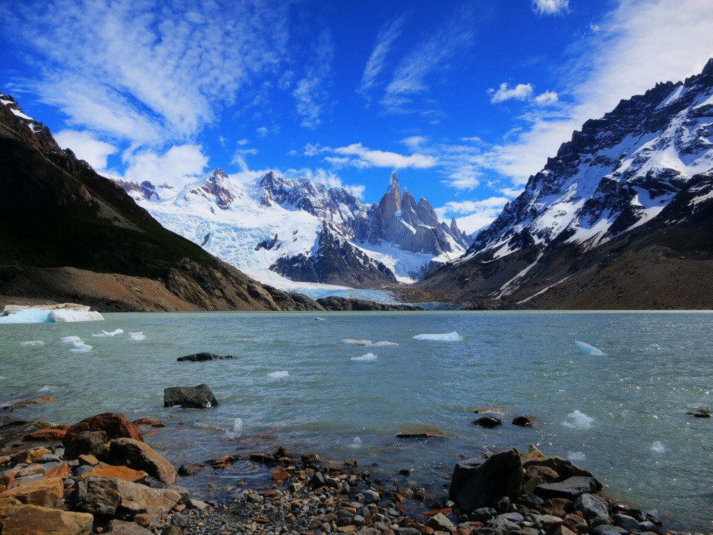 Anywho, so we arrived to town around 11, checked into our hostel, and were on the trail to Laguna Torre by noon. As the name implies, the trail takes your three hours away from town to a glacial lake at the base of Cerro Torre. We settled down on a rocky beach for lunch and to take in the views.