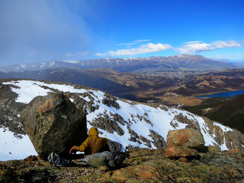We finally got back to the hostel around 6:30 PM, had some celebratory beers with dinner, and promptly slept like the rocks that surrounded us. The following day was similar; we woke up early and were on the trail to Monte Fitz Roy. Around the time we had warmed up and started feeling our bodies settle into the hike we managed to hop off the main trail onto an exceedingly similar and lightly worn secondary trail. I couldn’t help but comment on how nice the trail was. Usually, trails in places like that are very well marked and worn in and make you feel like you are one of the other million people who hike the same route. Finding a trail that appears unworn is a couple of things, notably 1) very exciting because you feel like you are laying new tracks 2) kind of unnerving because it can get lost or confused pretty easily. Well we followed this trail in this state of excited anxiety until it ran out completely and we couldn’t pick it back up. Turns out that was a good thing because it was indeed not the official trail. We had picked up an old trail from a previous year that had regressed into a glorified game trail which would have ultimately lead to nowhere had it continued. After scrambling around for about an hour, we managed to get back on the trail, hike another 4 hours to the base of the look out, complete the last hour or major altitude gain, and settle down for a chilly lunch. We found it hard to chew because the view was simply jaw-dropping.