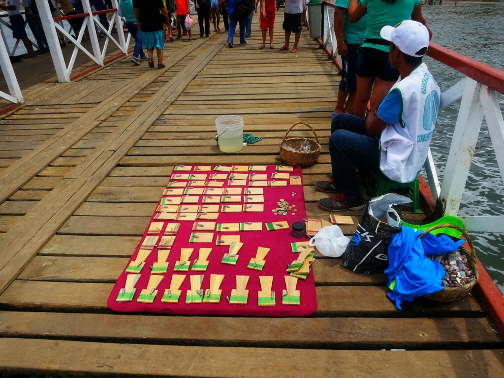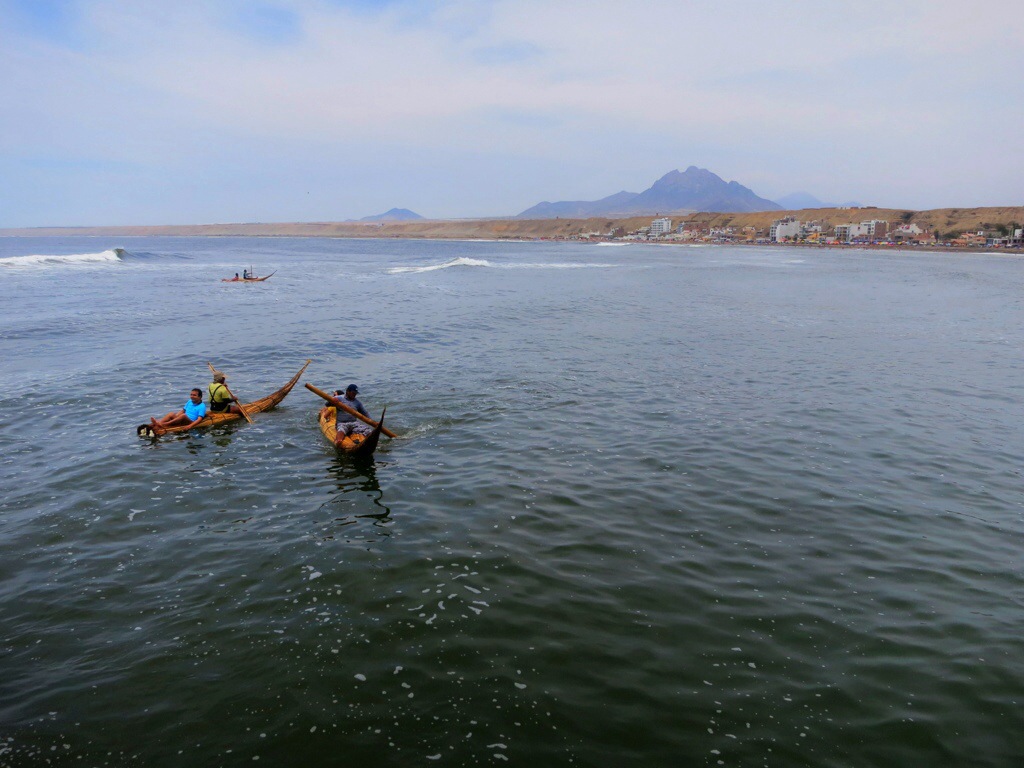 Anyways, that day we walked around the little beach town and down to the boardwalk. Holly and Julie got some shaved ice things called raspadillas with passion fruit and other exotic juices and purées. We paid .50sol to go on the boardwalk and watched people fish. All along the boardwalk were guys selling “fishing rods” which were just pieces of balsa wood wrapped in monofilament with a hook and weight. The bait of the day was clam and I didn’t see anyone catch anything so I couldn’t say if it was a good catching day, but I’m sure they enjoyed themselves. All kinds of people were on the boardwalk and most of them were fishing. I’ll also note now that the Peruvians are bigtime sea goers and have a long tradition of fishing. In Huanchaco, the locals fish in small boats made of reeds. They sit on the front and toss their catch into a space behind them to haul it in. That aft space also happens to fit a human pretty well, and many people hire out a fisherman for 20 minutes to a half hour to paddle around and flounder in the surf so we watched them from the boardwalk as well. Afterwards, we returned to our campground to relax in the hammocks and read mostly. That night we bought a couple beers from the restaurant and went upstairs to watch the sunset and see the beaches empty of the days sun-worshippers. This became a ritual for the next few days and was a highlight from the trip.